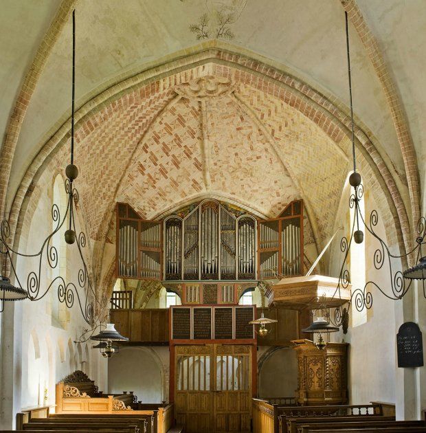 De twee oostelijke gewelven zijn beschilderd met 13e-eeuwse siermetselwerkpatronen. Kort na 1300 is in enkele fasen een zware stenen koorafsluiting gemetseld. Op deze bakstenen doxaal staat sinds 1531 een orgel. Daarmee is dit een van de oudste orgels van Nederland. De kerk heeft een sobere inrichting; preekstoel, doophek en een herenbank voor de familie Ripperda stammen uit de zeventiende eeuw.