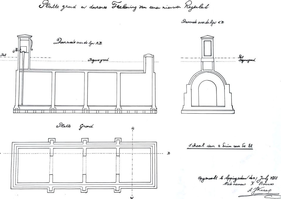 Een groep notabelen uit Appingedam richtte op 23 augustus 1859 een vereniging op die zich in artikel 1 van het Reglement ten taak stelde: “De daarstelling (plaatsing) en het onderhoud van een Regenwaterbak met dakgoten, afvoer etc. op het beplante kerkhof nabij de Nicolaïkerk te Appingedam. Deze regenwaterbak moet enigszins voorzien in alhier bestaande behoefte aan vers drinkwater en zal dienen ten algemenen nutte, vooral voor de bewoners in de kom van de stad, die tegen een geringe betaling water kunnen bekomen”.